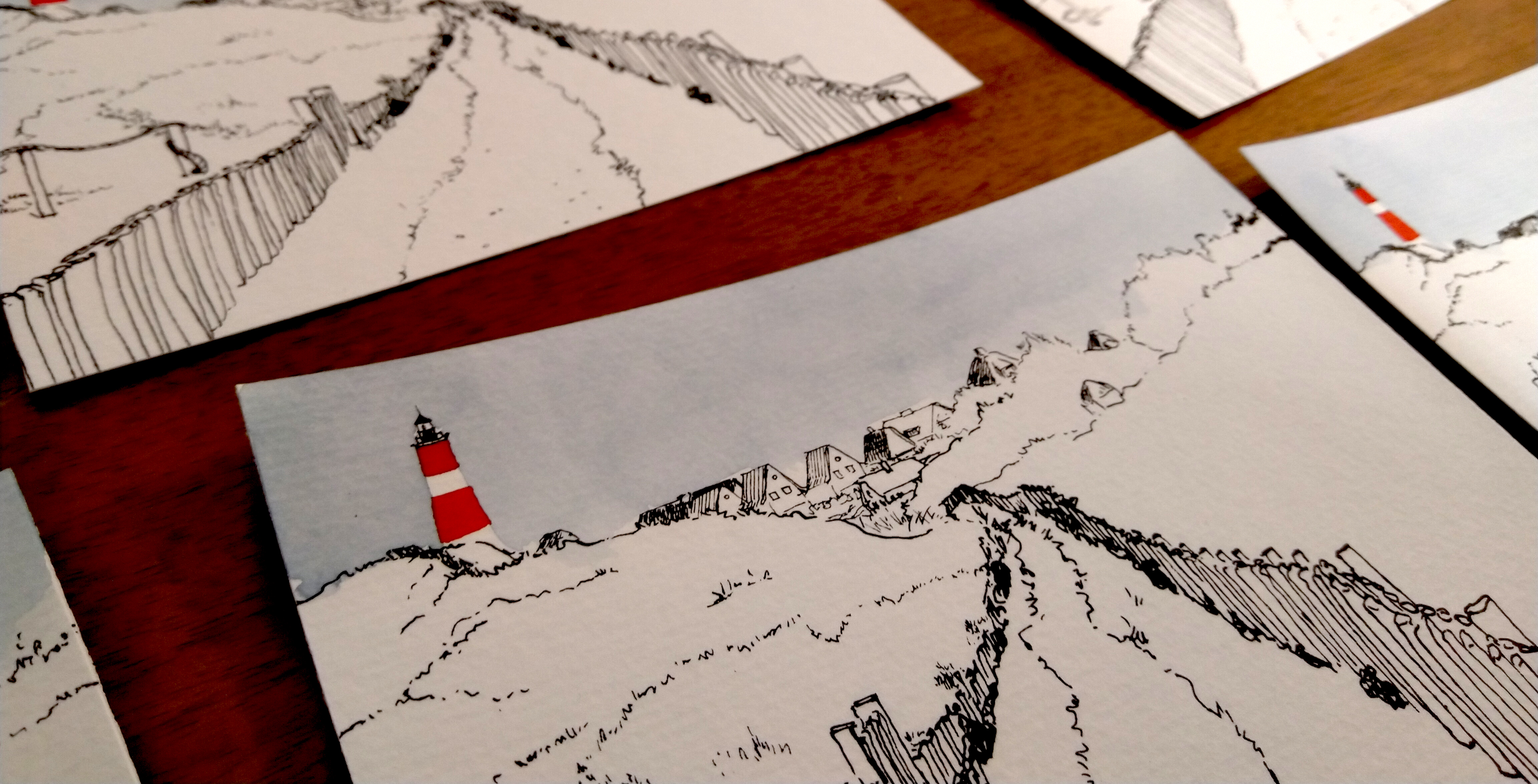 Handgedruckte und kolorierte Postkarten